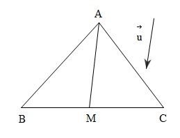 Cho tam giác $ABC, M$ thuộc đường thẳng $BC$. $\overrightarrow u //\overrightarrow {AM} ,\overrightarrow u = \alpha \overrightarrow {AB} + \beta \overrightarrow {AC} $. Khi đó ta có $\frac{{\overline {MB} }}{{\overline {MC} }} = - \frac{\beta }{\alpha }$