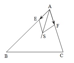 \Rightarrow \left| {\frac{{\overrightarrow {AB} }}{{AB}} + \frac{{\overrightarrow {AC} }}{{AC}}} \right| = \left| {\overrightarrow {AE} + \overrightarrow {AF} } \right| = \left| {\overrightarrow {AS} } \right| = 2c{\rm{os}}\frac{A}{2}\\