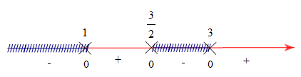 * Vế trái của $(2)$ đổi dấu khi $m$ đi qua các giá trị $m=1, m=\frac{3}{2}, m=3$