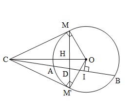 Cho ba điểm $C, A, B$ thẳng hàng và được xắp xếp theo thứ tự đó. Một đường tròn $(O)$ thay đổi luôn đi qua hai điểm $A, B; CM, CM’$ là các tiếp tuyến của $(O)$. Chứng minh rằng: