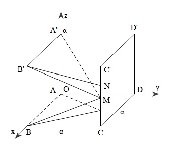 $\overrightarrow{CM}=\frac{a}{3} \Rightarrow M(a;a;\frac{a}{3} ), CN=\frac{2a}{3} \Rightarrow N(a;a;\frac{2a}{3} ) $