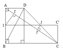Gọi $C'$ là hình chiếu cuả $C$ lên $IJ$. Ta có $IJ$ là đường trung bình của hình thang $ABCD$. Do đó: